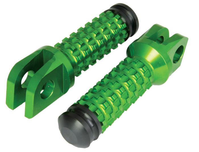 ALLY FOOT PEGS WITH SLIDER (PAIR) KAWASAKI FRONT GREEN KW11F
